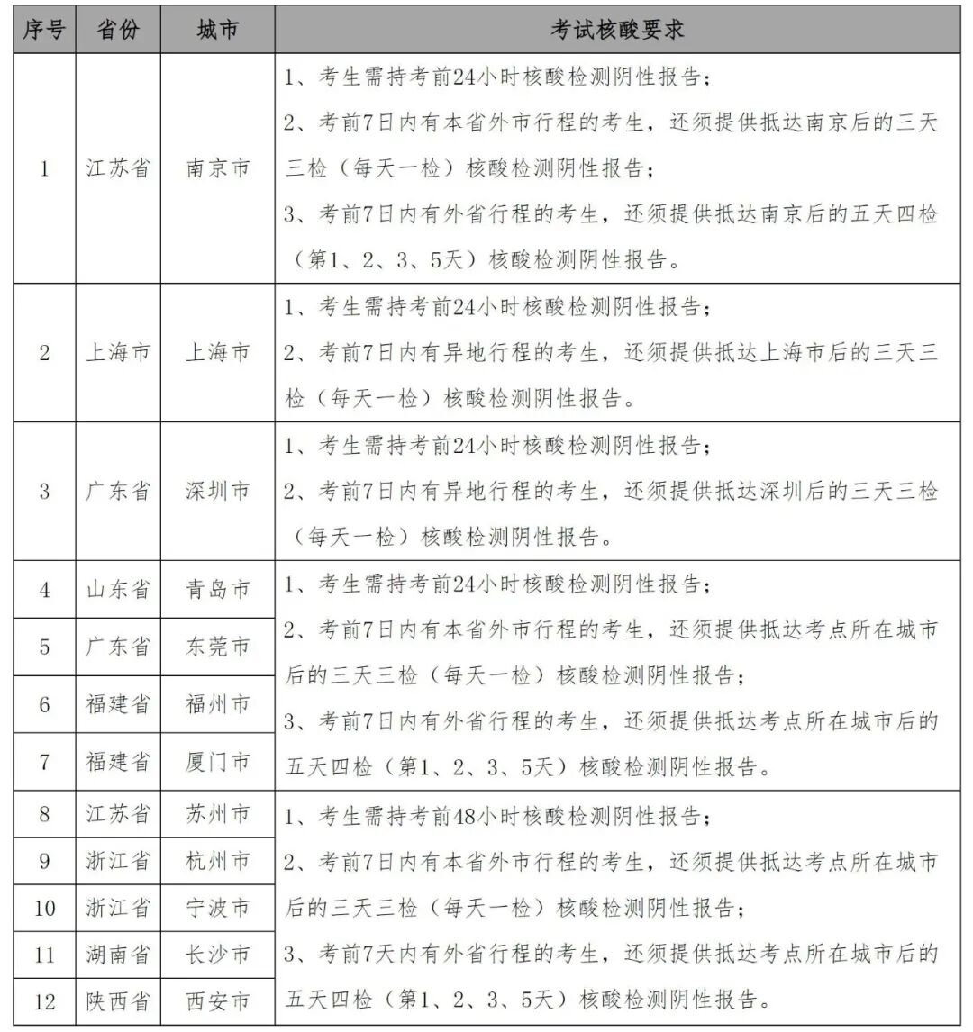为切实保障广大考生和考试工作人员的生命安全和身体健康,根据国务院联防联控机制于6月28日发布的《新型冠状病毒肺炎防控方案 (第九版) 》以及11月11日发布的《关于进一步优化新冠肺炎疫情防控措施 科学精准做好防控工作的通知》 (以下简称《通知》) 规定,结合考试实际和各地相关要求,现将涉及考生个人的疫情防控相关规定更新告知如下。